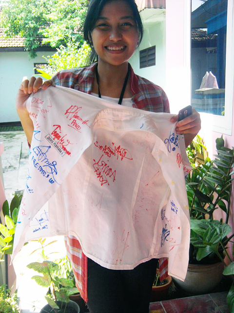 Cute chair, isn’t it? I wonder why the cloth pictoral strawberries instead of apples? Because as we know that Malang is the town of apples.
